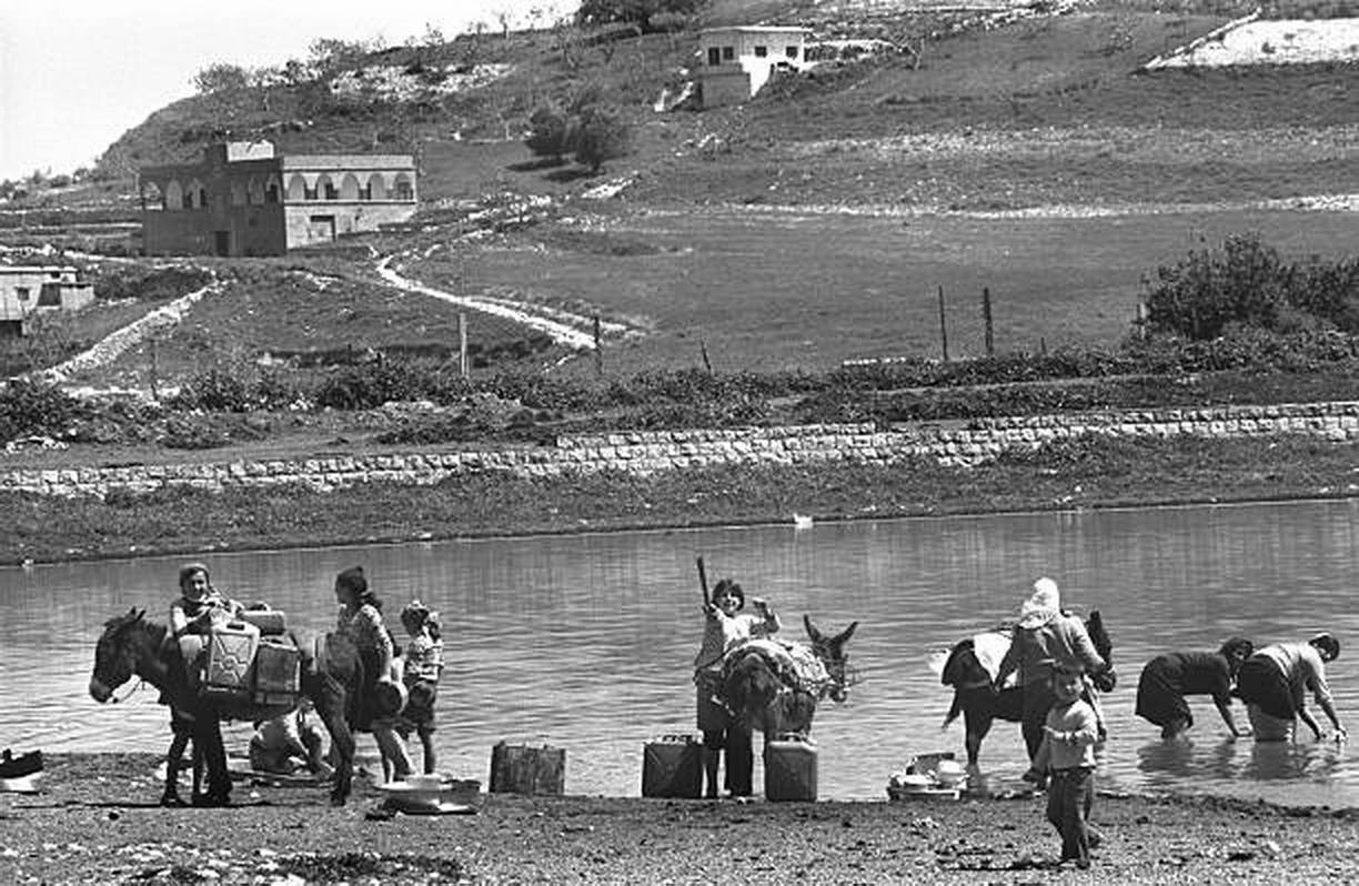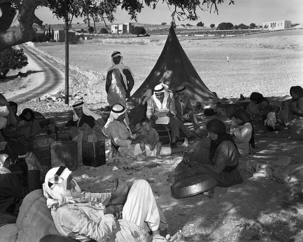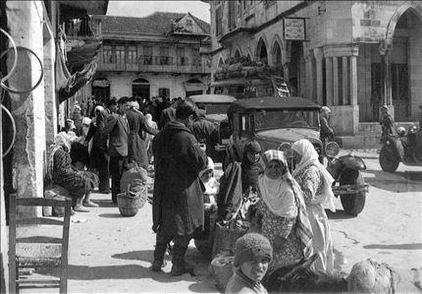 Palestinian Refugees Crossing Frontiers, 1948 Waiting for transportation to Lebanon..1948. Nakba (النكبة)...اللاجئين الفلسطينيين في انتظار النقل إلى لبنان