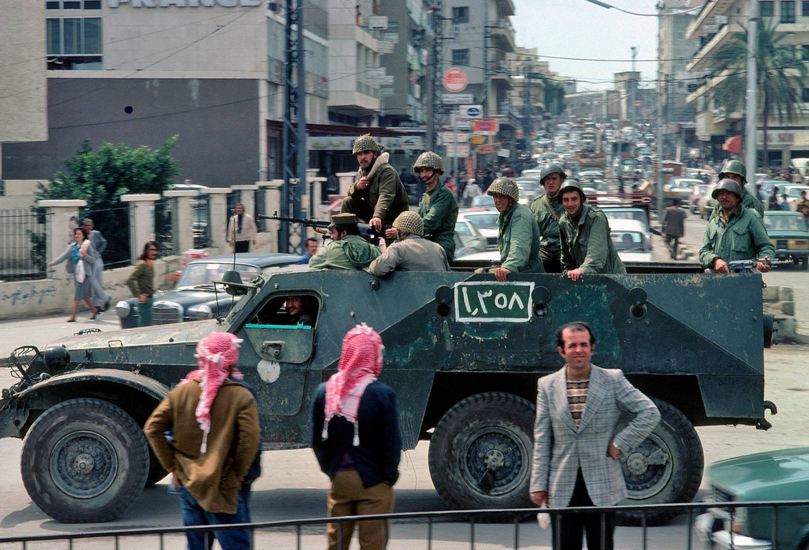 1978 - .دورية جنود السورية في مدينة صيدا. جنوب لبنان