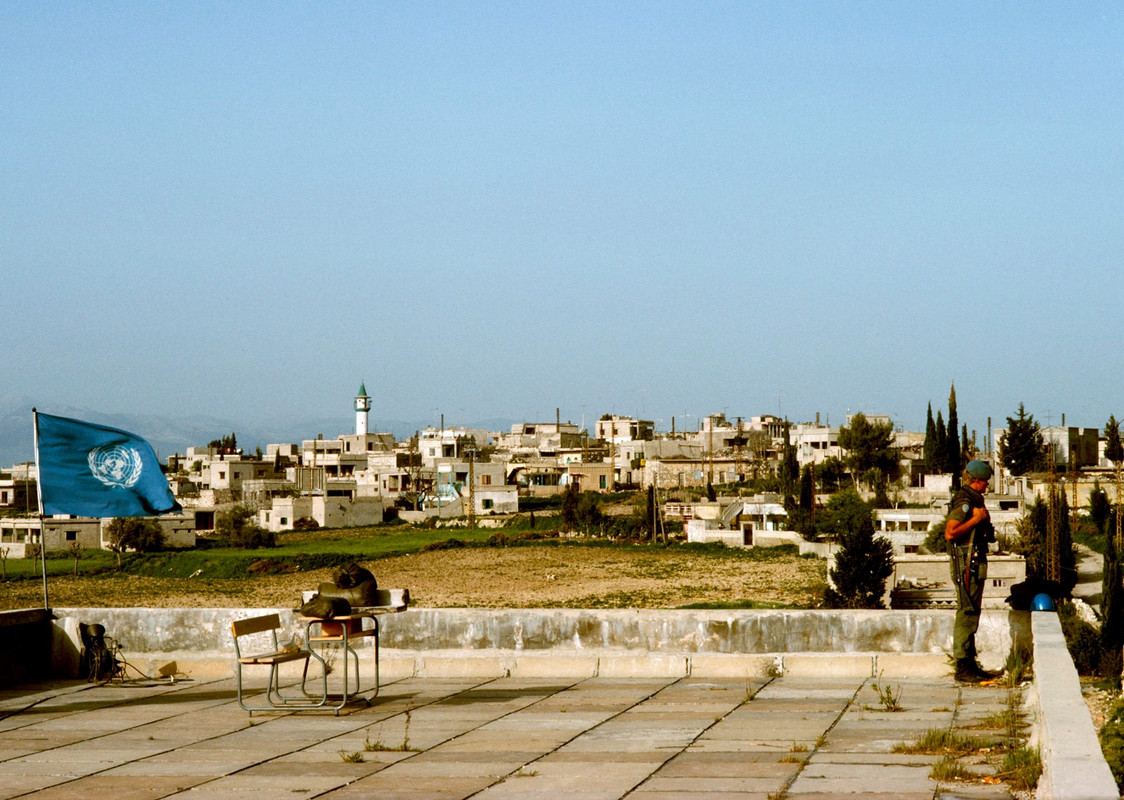 Syrian soldiers on patrol in the city of Saida. 1978 Saida, Lebanon.. UN Photo/John Isaac.